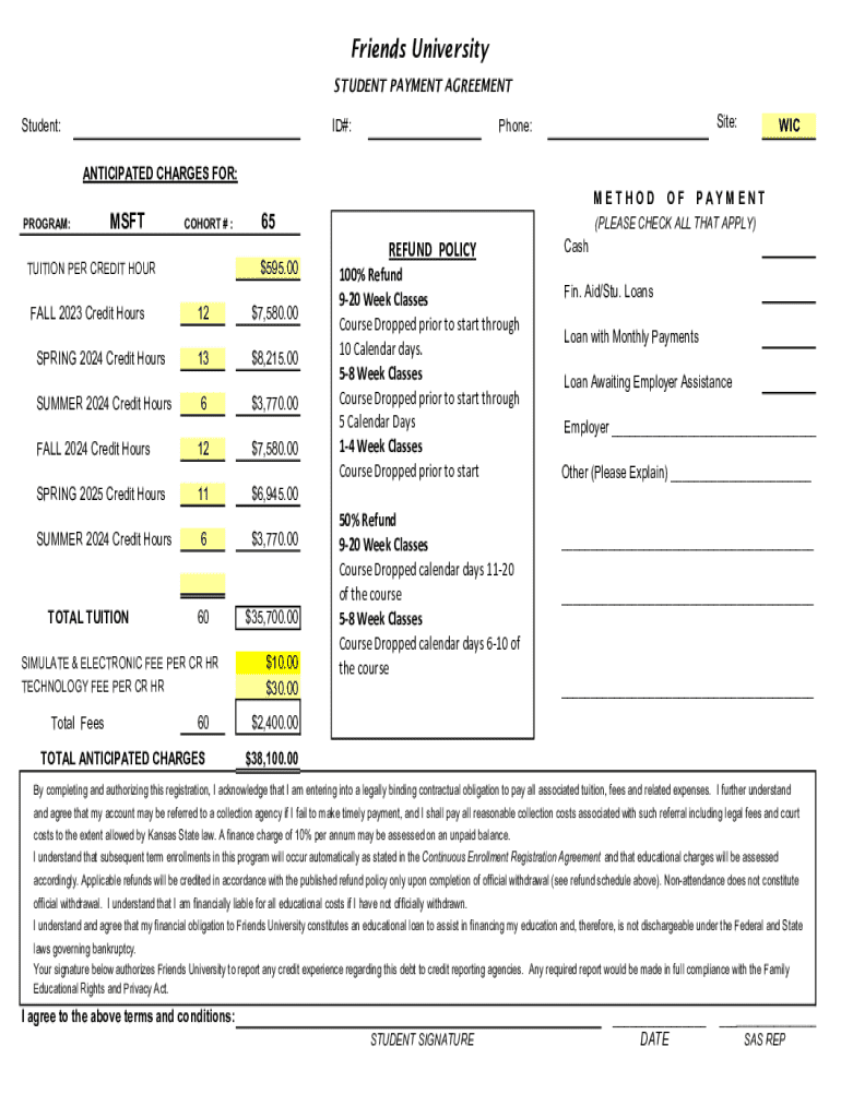 Get the free Student Payment Agreement