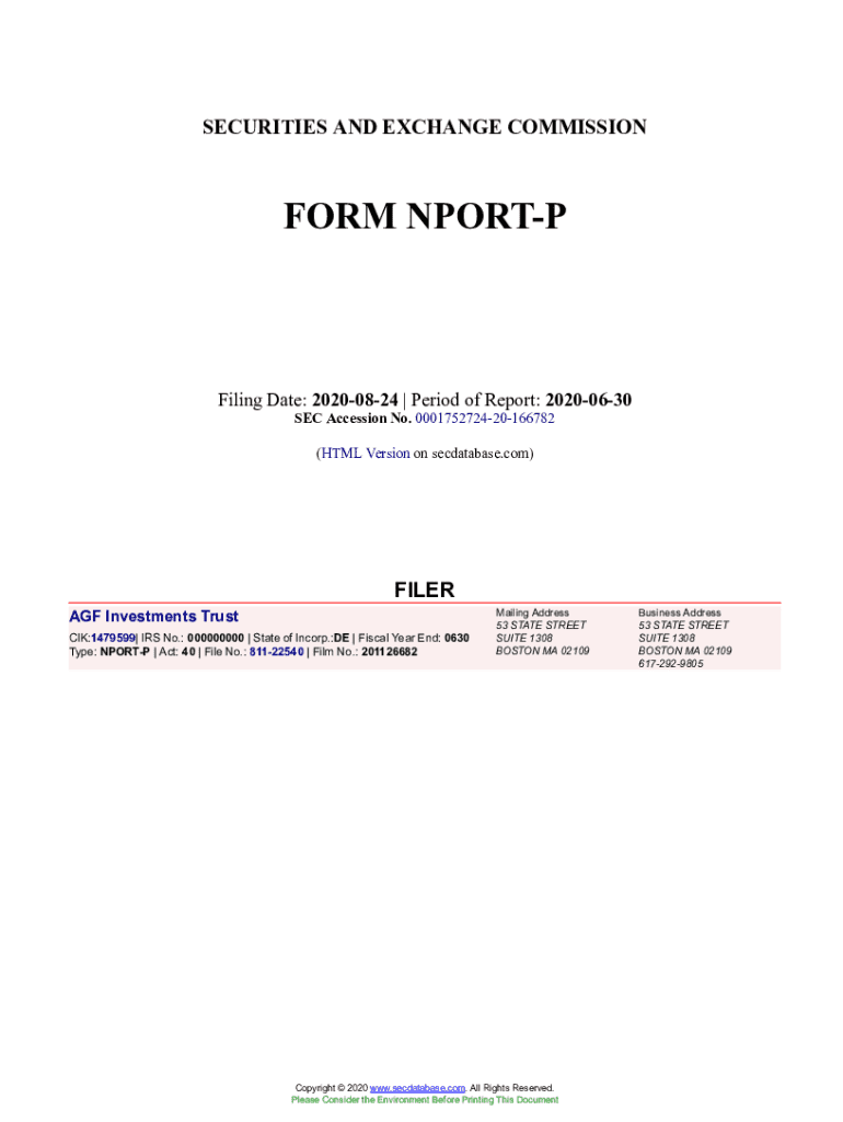 This document is a filing with the Securities and Exchange Commission detailing the financial status and portfolio investments of AGF Investments Trust as of June 30, 2020.