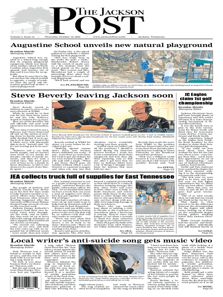 Volume 3, Issue 41|Thursday, October 10, 2024|www.JacksonPost.news|Jackson, TennesseeAugustine School unveils new natural playground Brandon Shields Managing Editor Augustine School has existed as