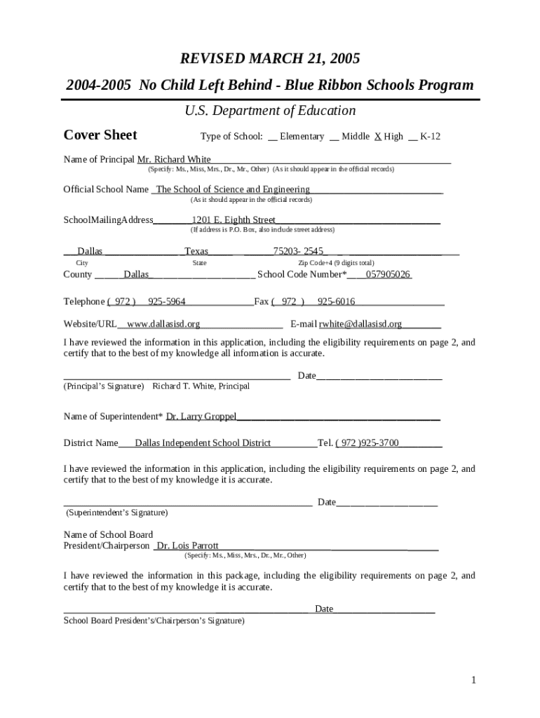 How to fill No Child Left Behind - Blue Ribbon Schools Program word template