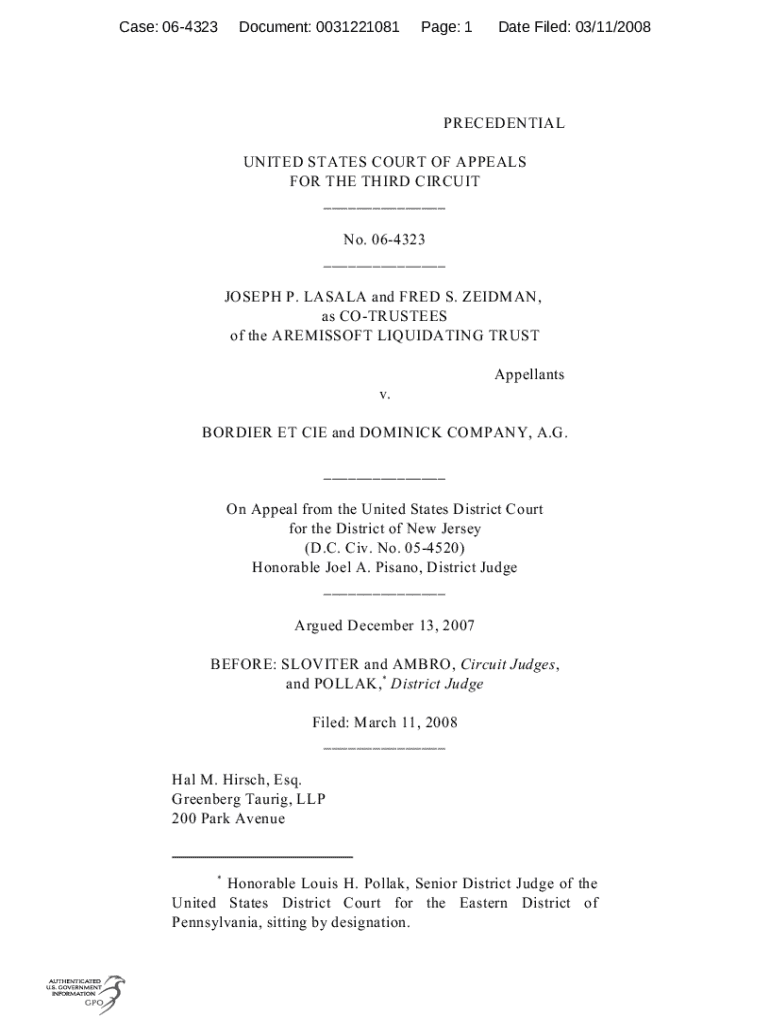 This document is a judicial opinion from the United States Court of Appeals for the Third Circuit regarding case number 06-4323. The opinion discusses the appeals filed by Joseph P. LaSala and Fred