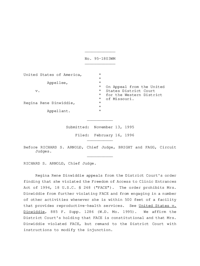 Get the free No. 95-1803WMUnited States of America ... - ecf ca8 uscourts