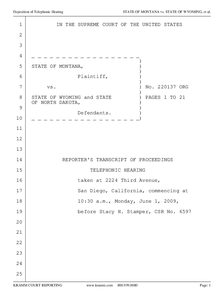Get the free Deposition of Telephonic Hearing
