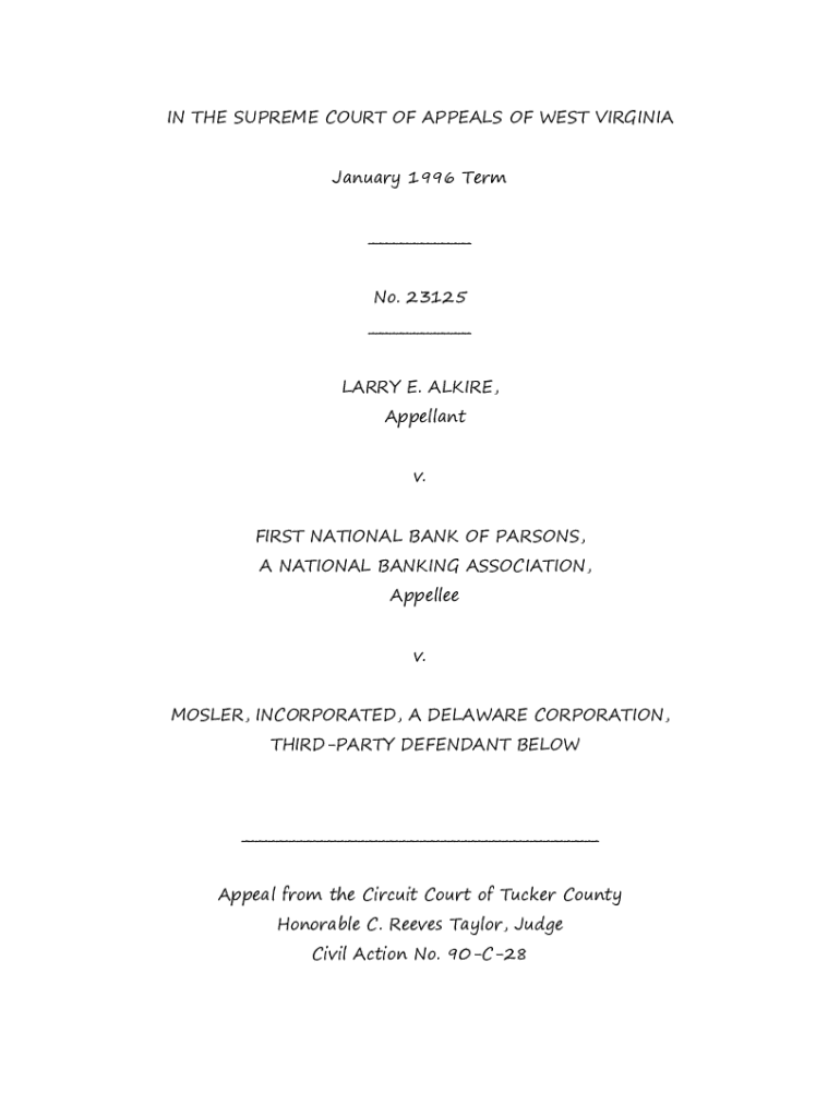 Get the free Alkire v. First Nat. Bank of Parsons - West Virginia - Case Law