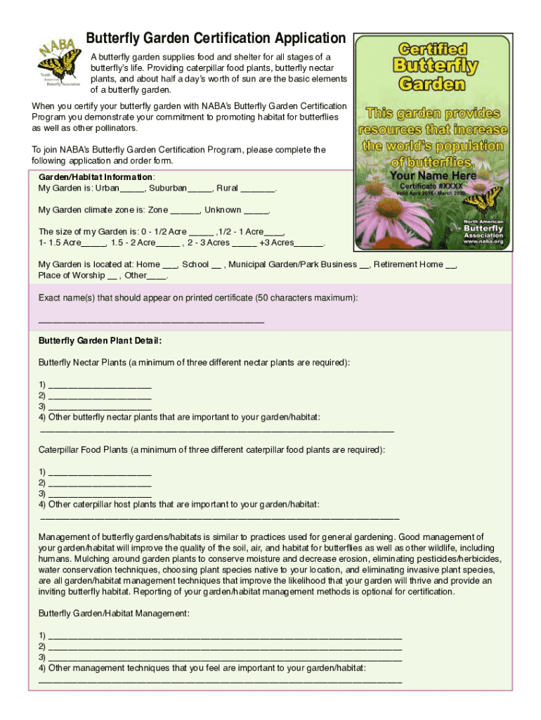 Fill out your butterfly garden certification application online with pdfFiller!