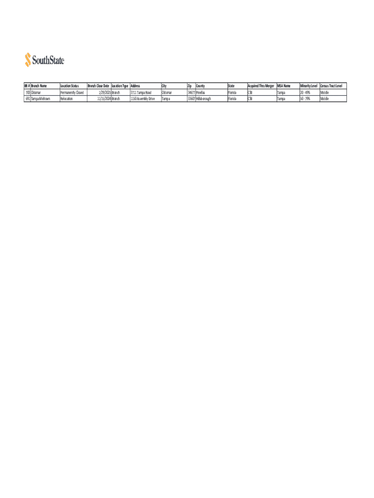 This document contains information regarding the closure and relocation of various bank branches, including addresses, closure dates, and demographic data.