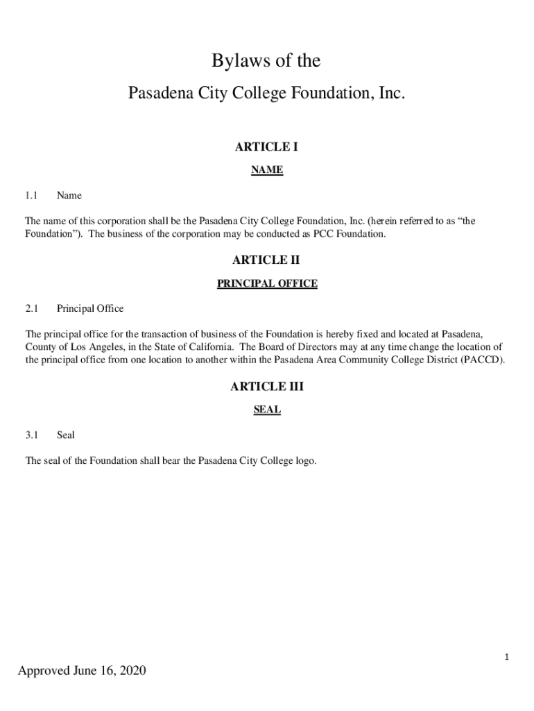 Get the free Bylaws of the Pasadena City College Foundation, Inc.