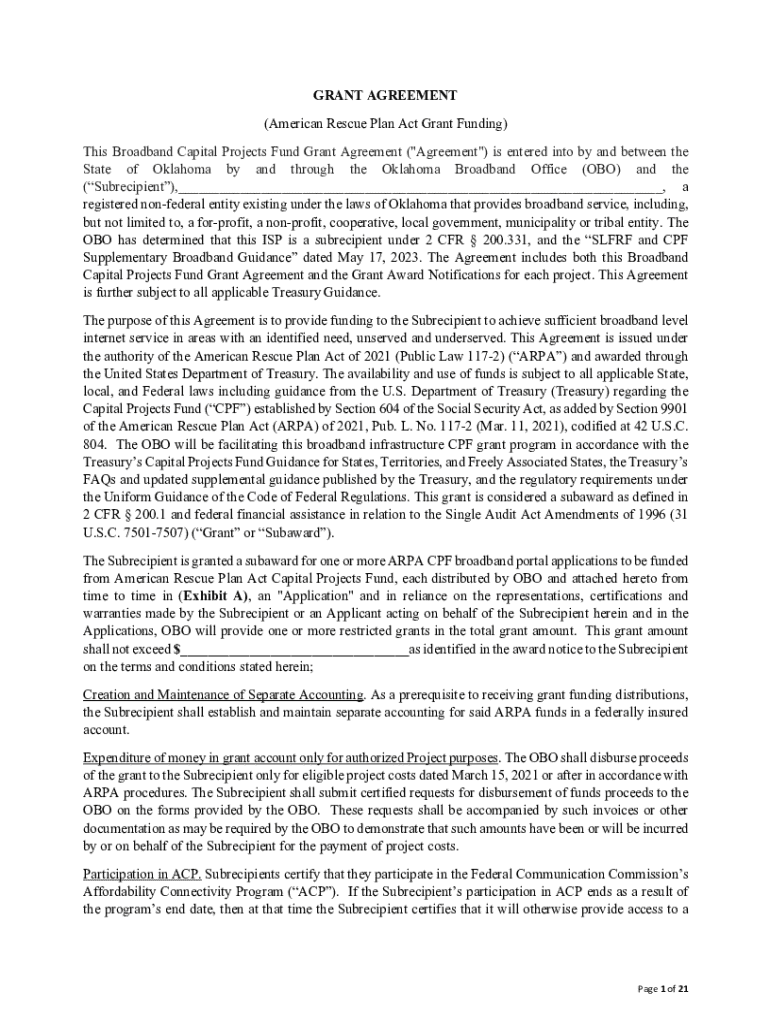 Get the free Broadband Capital Projects Fund Grant Agreement