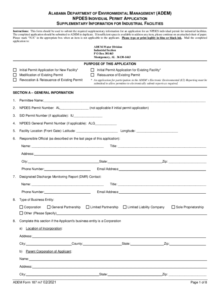 Get the free Npdes Individual Permit Application Supplementary Information for Industrial Facilities