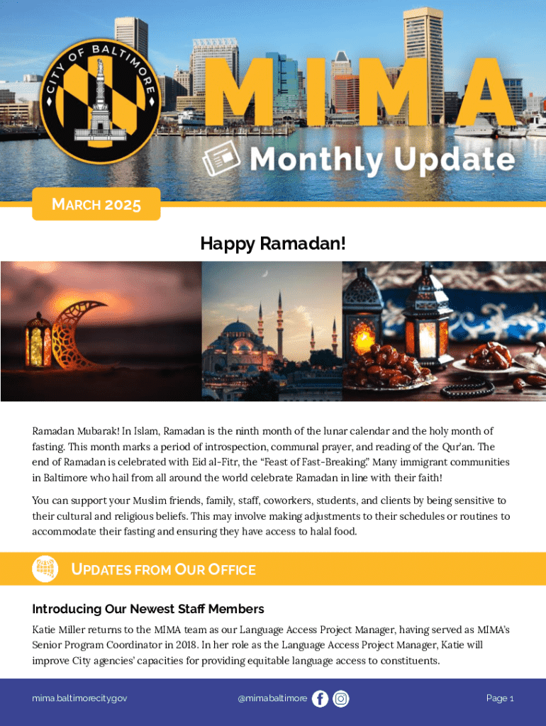 A monthly bulletin from the Baltimore City Mayor\'s Office of Immigrant Affairs, providing updates, cultural information, community resources, and employment opportunities related to immigrant affairs