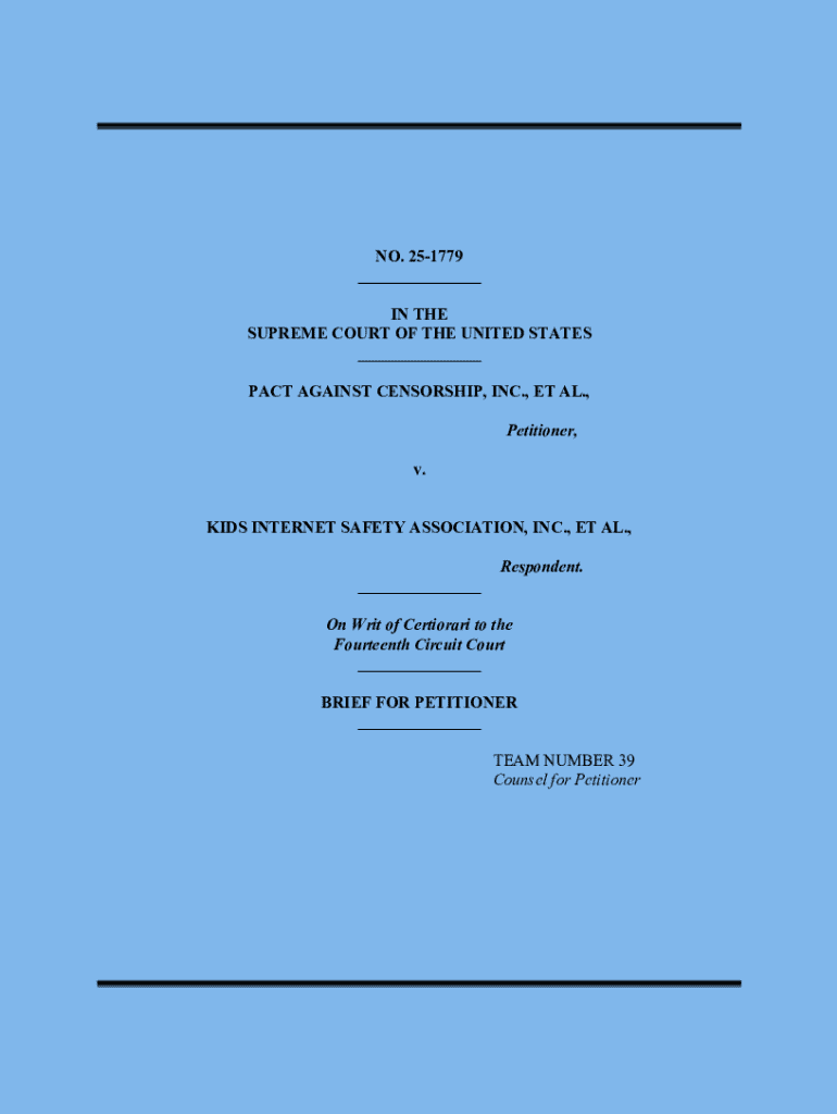 This document is a legal brief presented to the Supreme Court, addressing constitutional challenges against the Keeping the Internet Safe for Kids Act, focusing on non-delegation of authority and