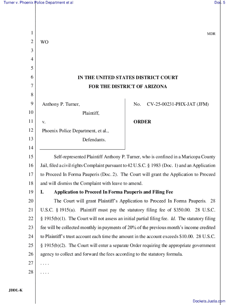 Turner v. Phoenix Police is a legal case that involves issues surrounding police conduct and civil rights, specifically relating to the actions of the Phoenix Police Department against an individual named Turner.