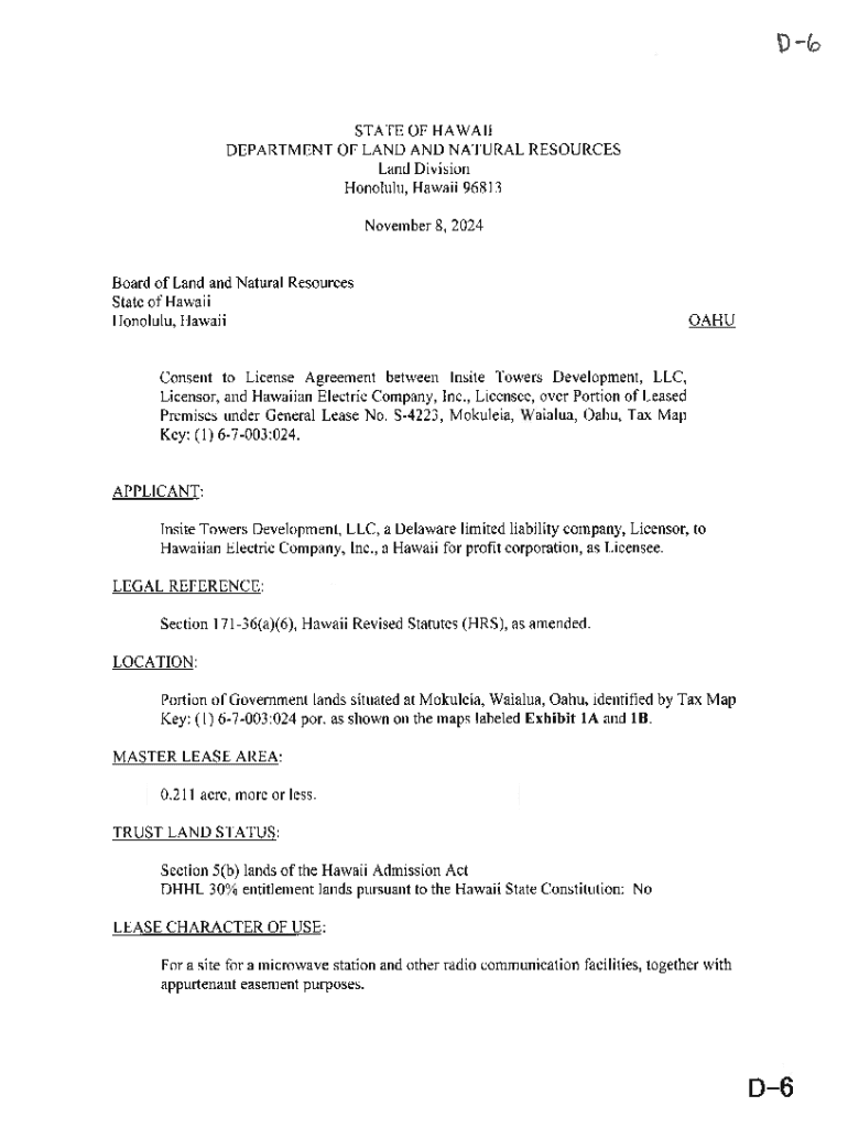 BLNR - consent to is a form that provides approval or permission for certain activities or transactions related to land and natural resources in Hawaii.