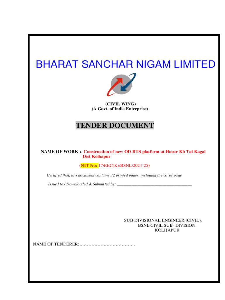 Get the free Tender Document for Construction of New Od Bts Platform