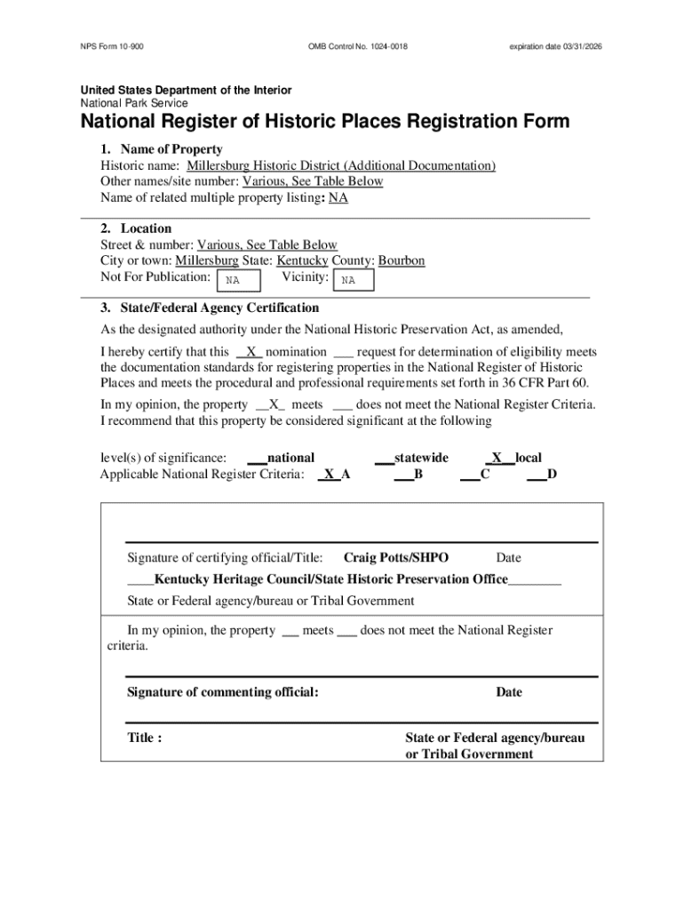 Get the free Nps Form 10-900 - heritage ky