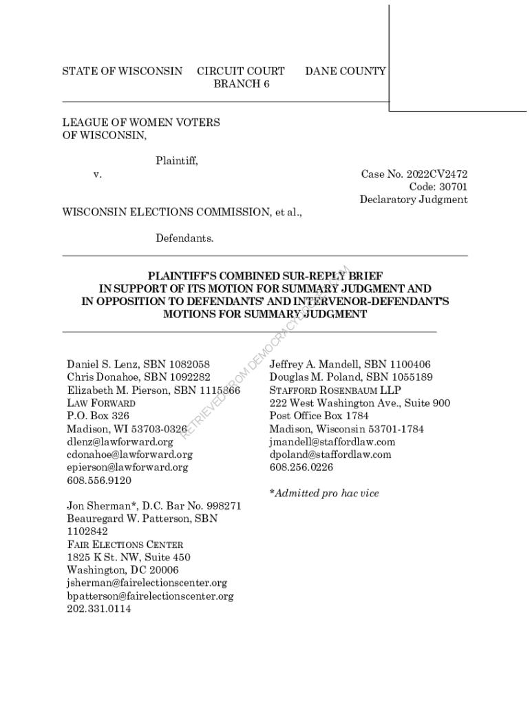 Plaintiffs Combined Sur-Reply Brief is not the form you're looking for?Search for another form here.