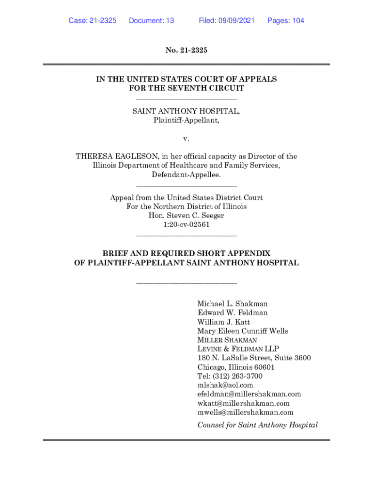 This document is a legal brief filed in the United States Court of Appeals for the Seventh Circuit concerning an appeal by Saint Anthony Hospital against the Director of the Illinois Department of