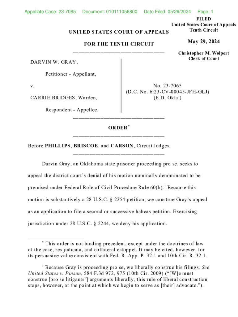 Get the free Appellate Case: 23-7065 - ca10 washburnlaw