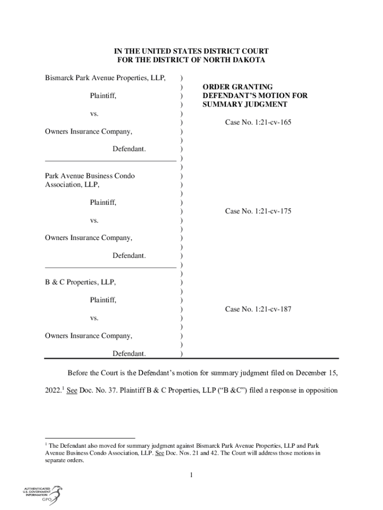 Get the free Order Granting Defendant’s Motion for Summary Judgment
