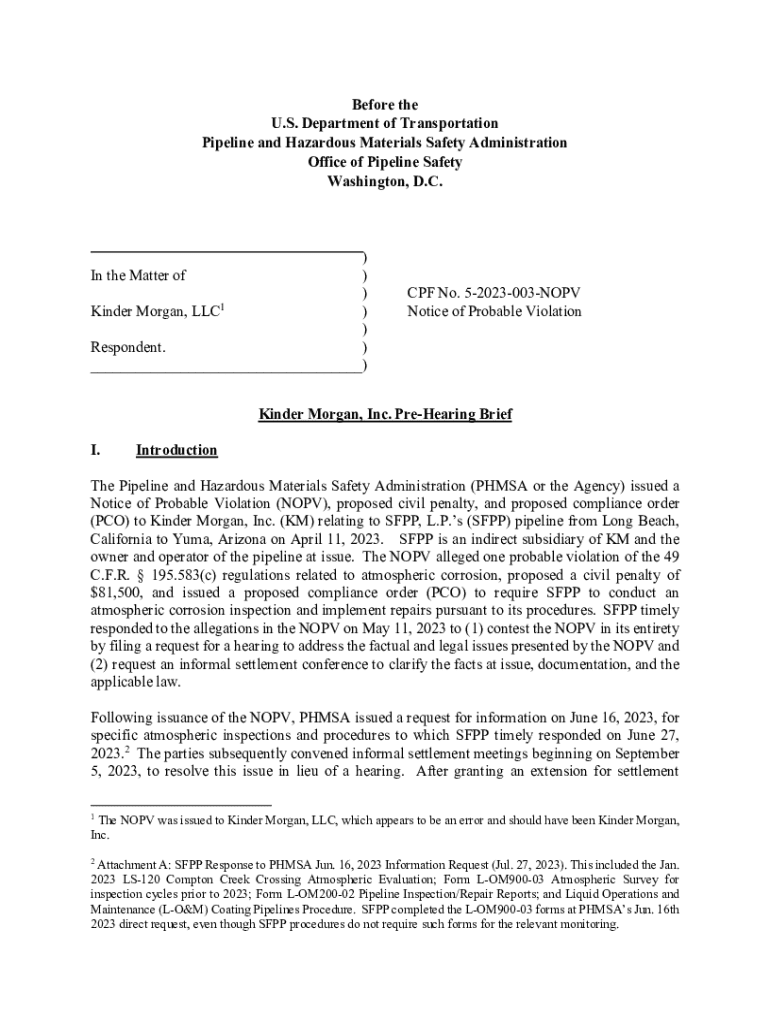 Get the free Notice of Probable Violation - primis phmsa dot
