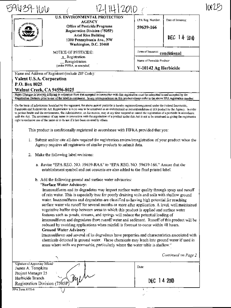 Get the free Notice of Pesticide Registration for V-10142 Ag Herbicide