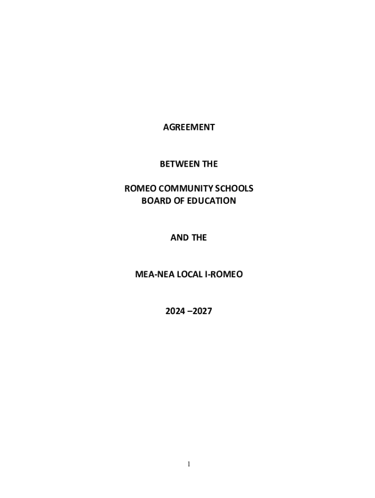Get the free Agreement Between Romeo Community Schools Board of Education and Mea-nea Local I