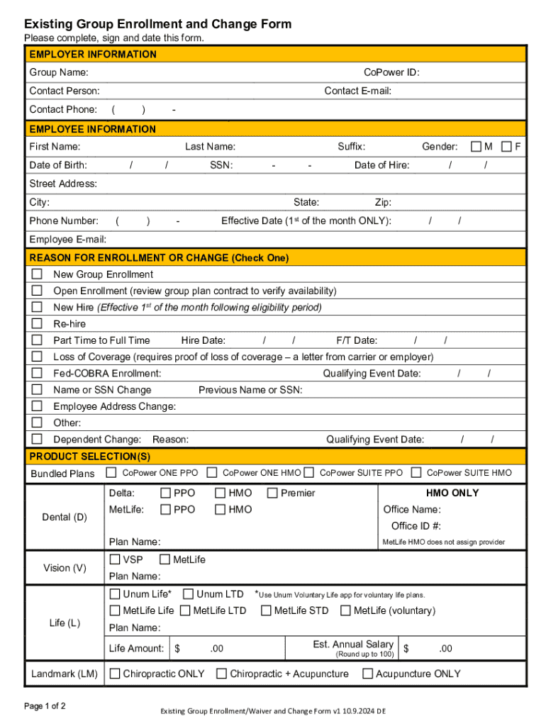 Get the free Existing Group Enrollment and Change Form