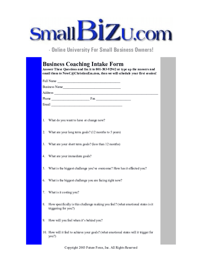 How to fill out business coaching intake form?