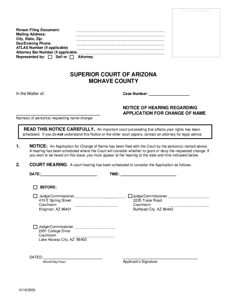Get the free Notice of Hearing Regarding Application for Change of Name