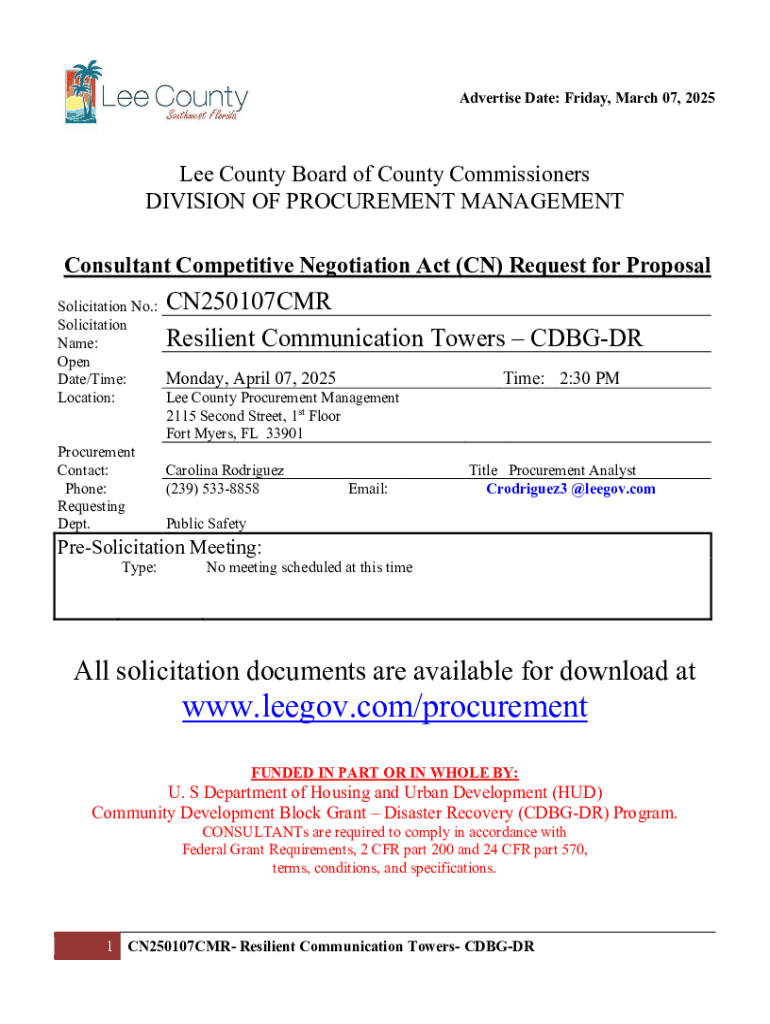 Get the free Request for Proposal Cn250107cmr Resilient Communication Towers
