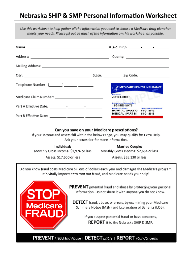 Get the free Nebraska Ship/smp Personal Information Worksheet