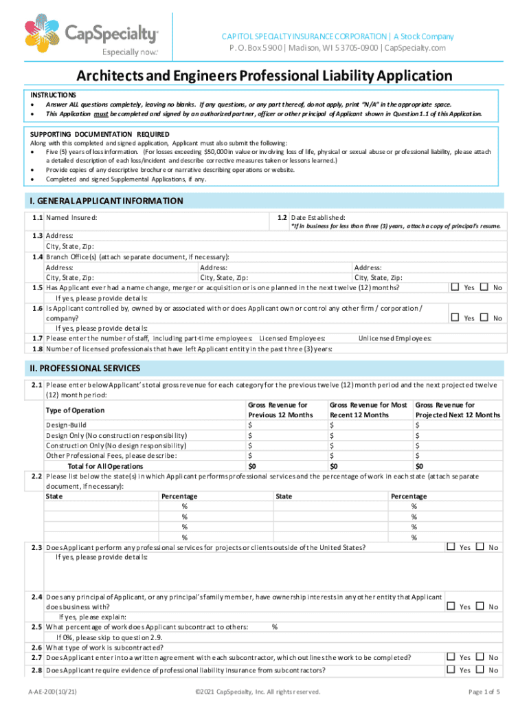 Get the free Architects and Engineers Professional Liability Application