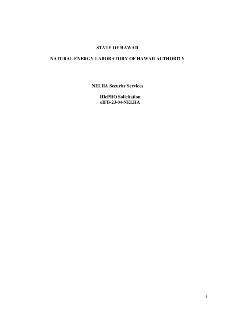 To fill out the NELHA security services solicitation, one must complete the designated application forms, provide necessary qualifications and references, and submit a detailed proposal outlining the services offered.