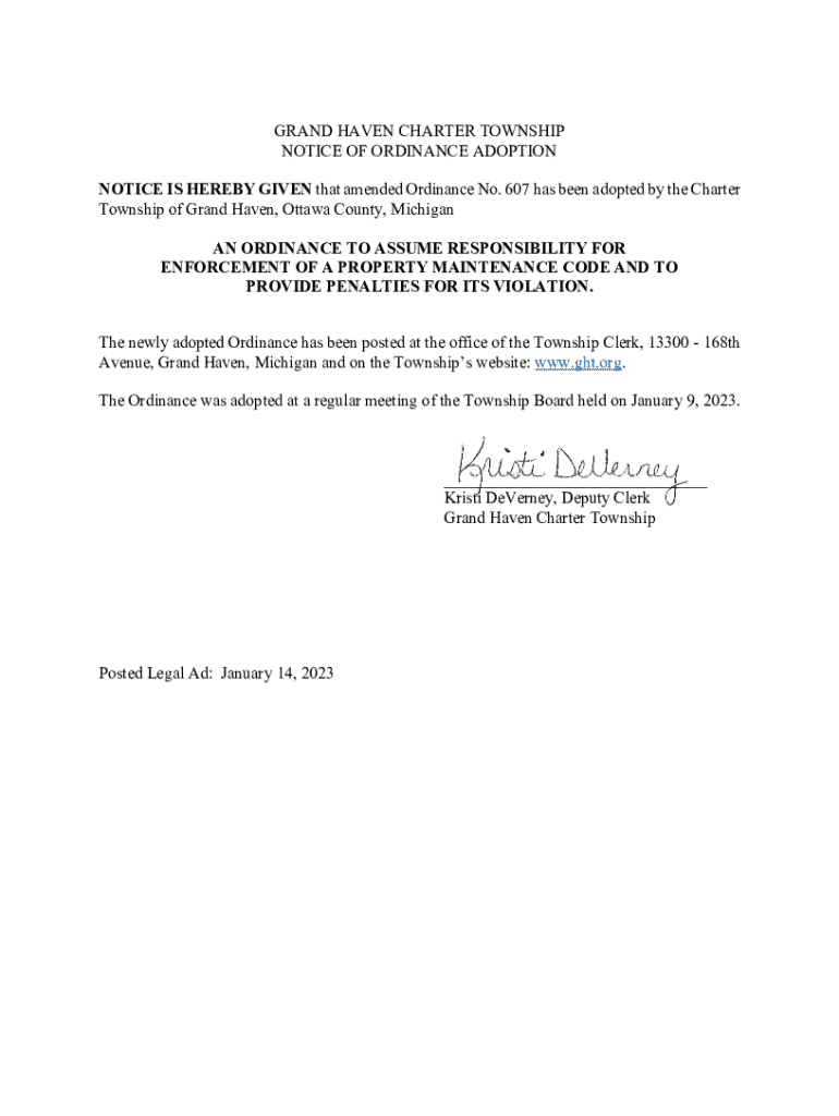 Notice of ordinance adoption form: A comprehensive guide