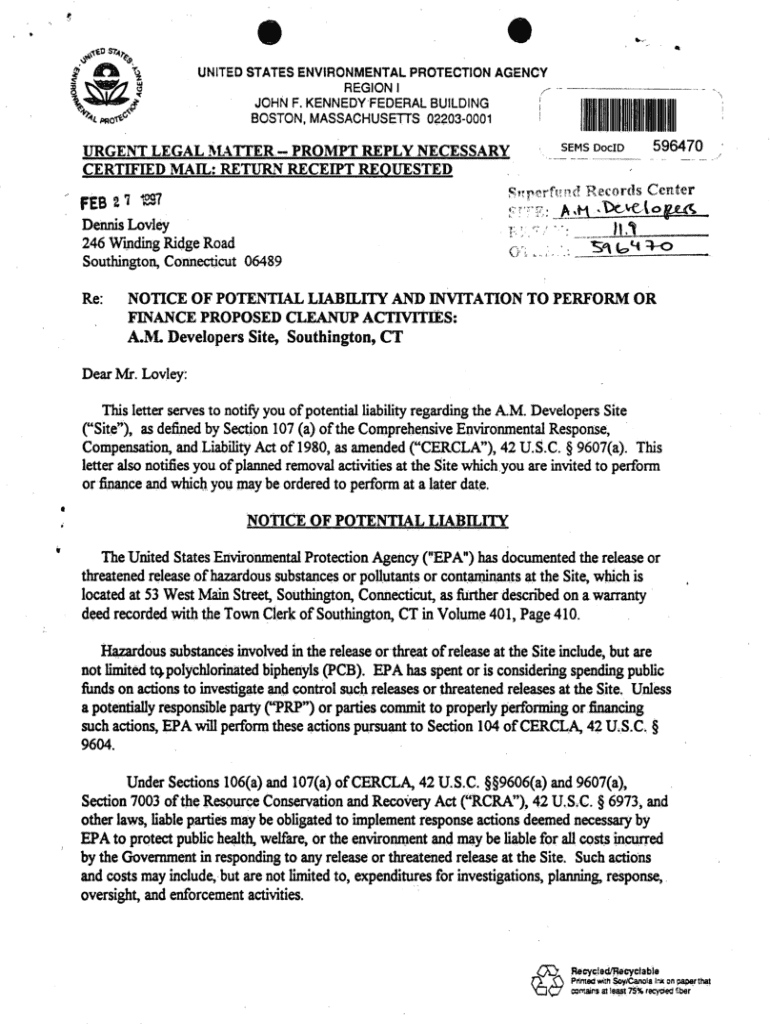 Get the free Notice of Potential Liability and Invitation to Perform or Finance Proposed Cleanup ...
