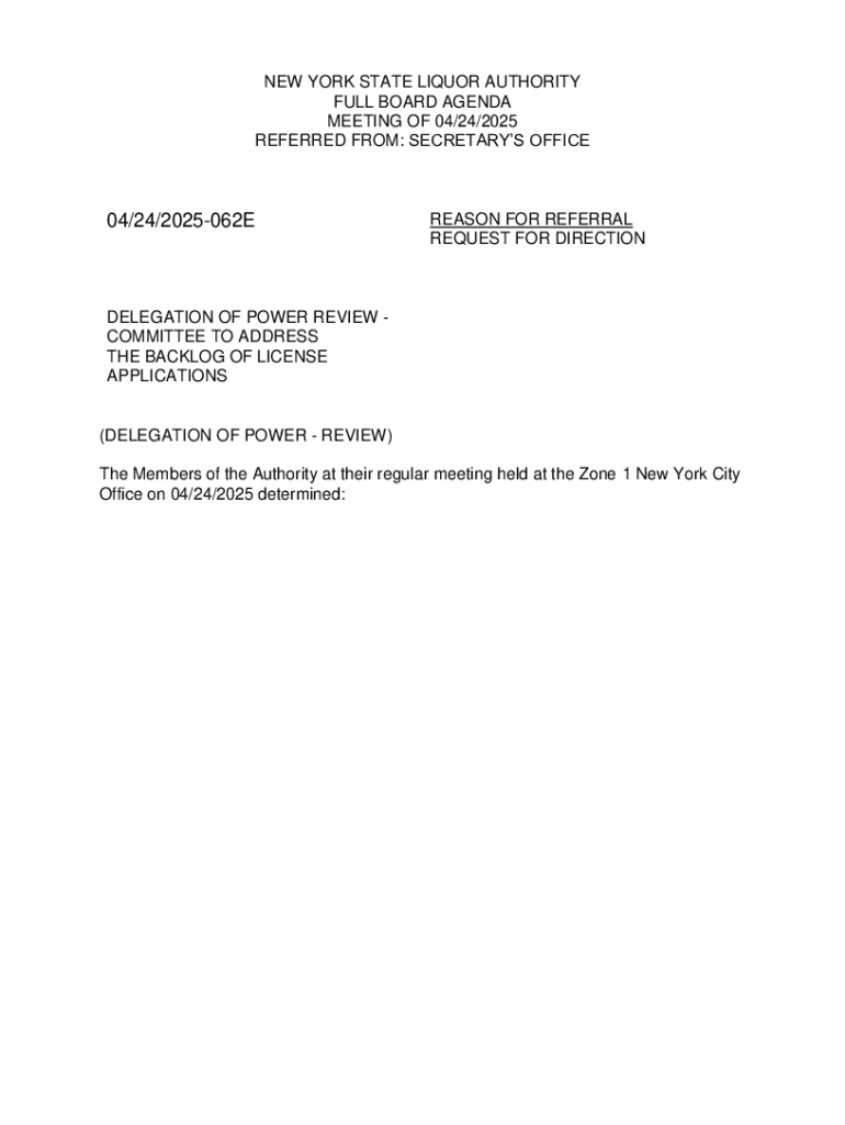 Get the free New York State Liquor Authority Full Board Agenda Meeting of 04/24/2025 - sla ny