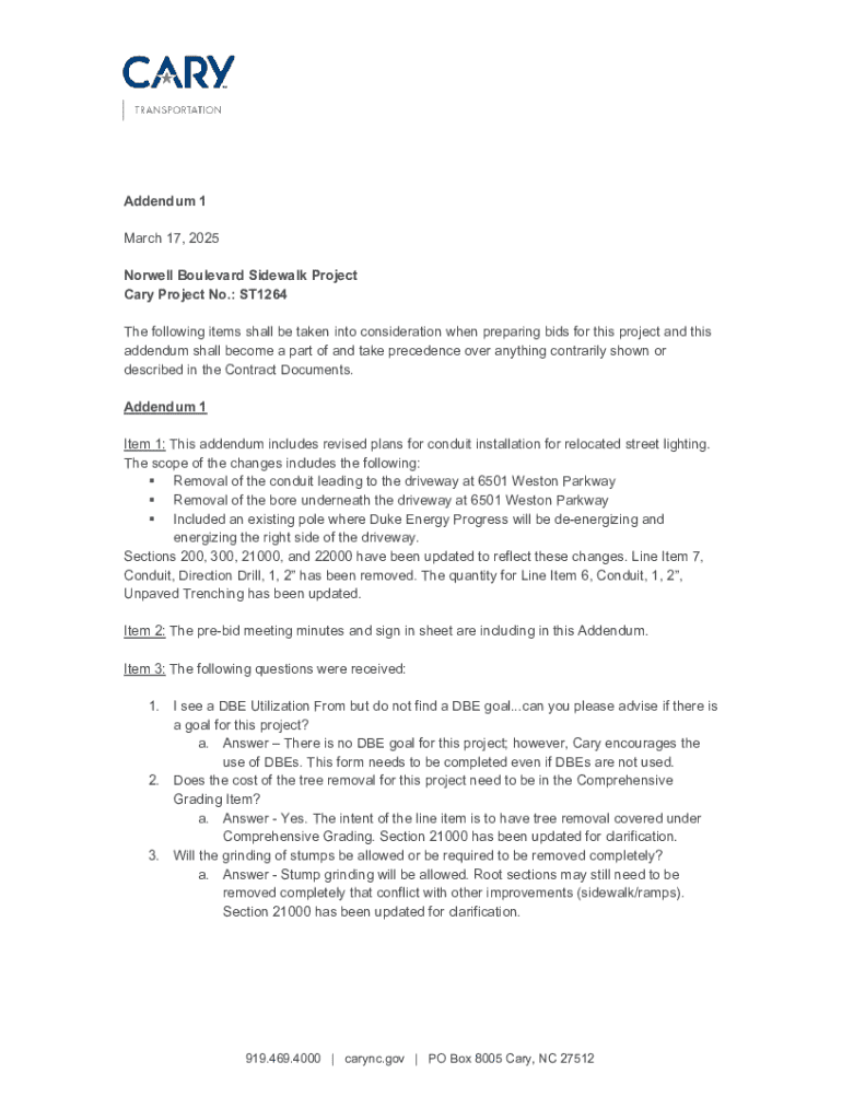 Get the free Norwell Boulevard Sidewalk Project Addendum 1