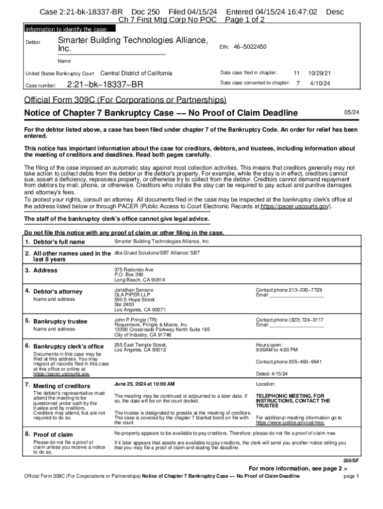 Get the free Notice of Chapter 7 Bankruptcy Case - No Proof of Claim Deadline