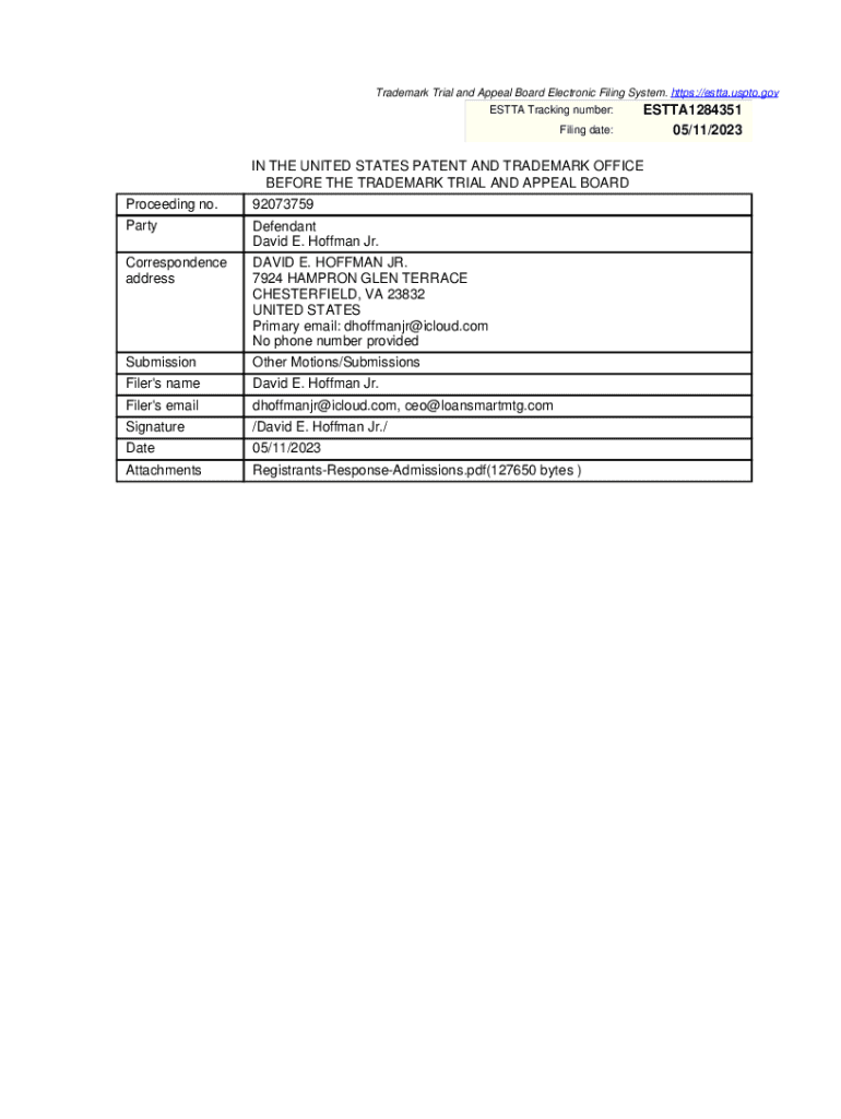 Get the free Registrant David E. Hoffman's Response to Petitioner's First Request for Admissions