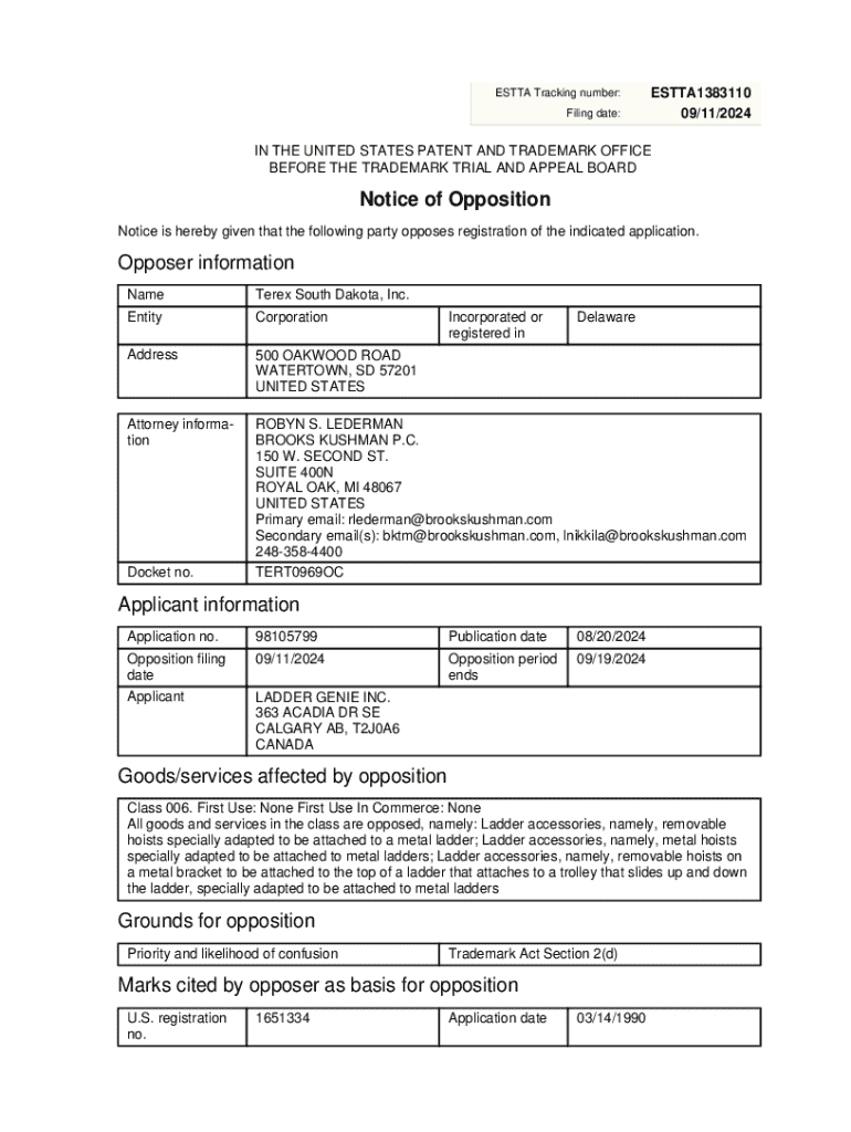Get the free Notice of Opposition