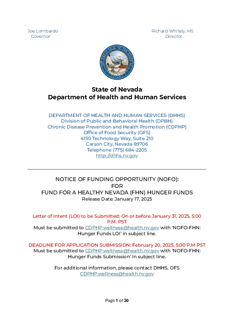 Get the free Notice of Funding Opportunity for Fund for a Healthy Nevada Hunger Funds - dhhs nv
