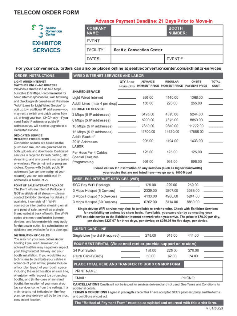 Get the free Telecom Order Form