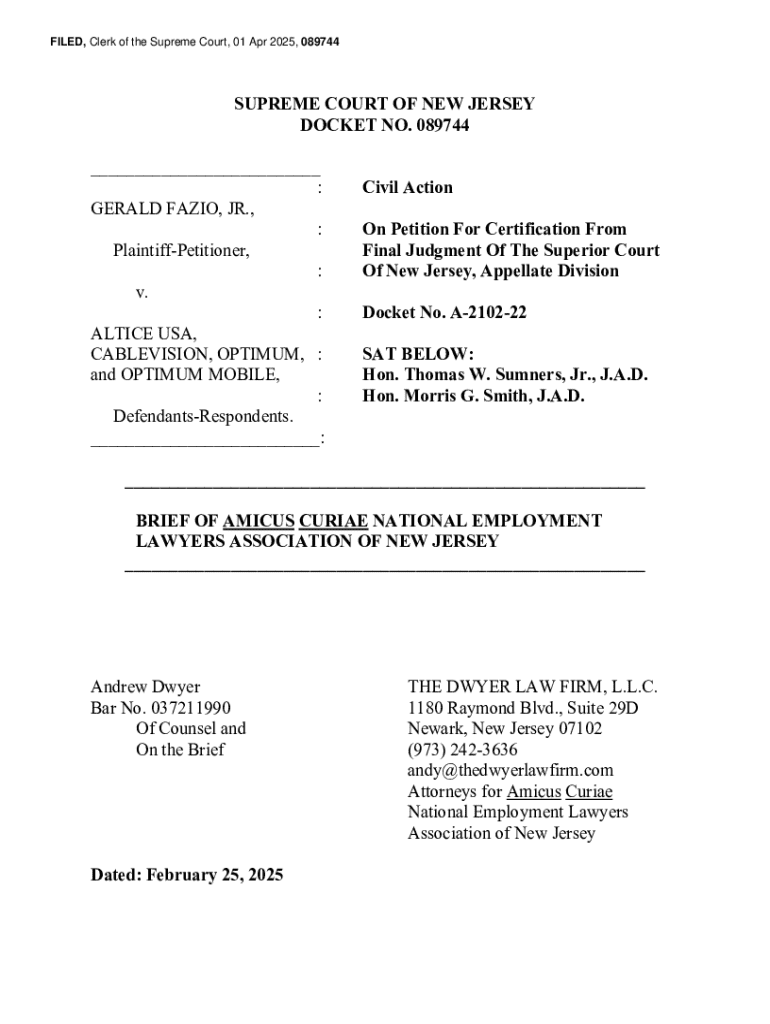Get the free Brief of Amicus Curiae National Employment Lawyers Association of New Jersey