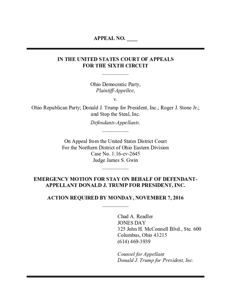 Get the free Emergency Motion for Stay - law osu