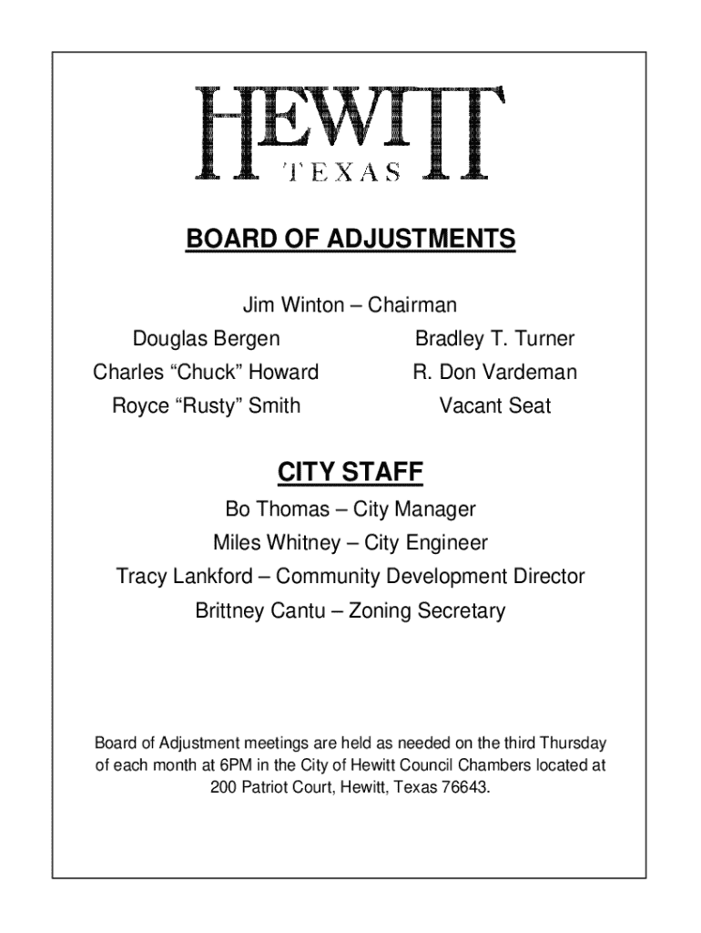 Get the free Notice of Meeting of the Board of Adjustment