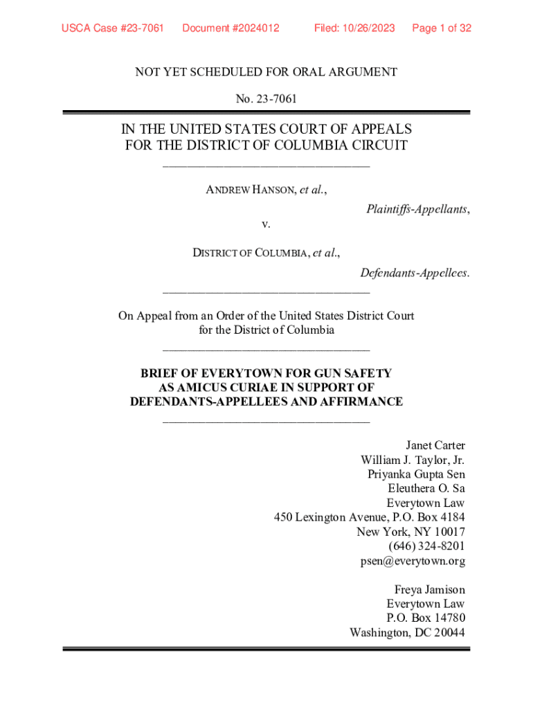 Get the free Brief of Everytown for Gun Safety as Amicus Curiae in Support of Defendants-appellee...
