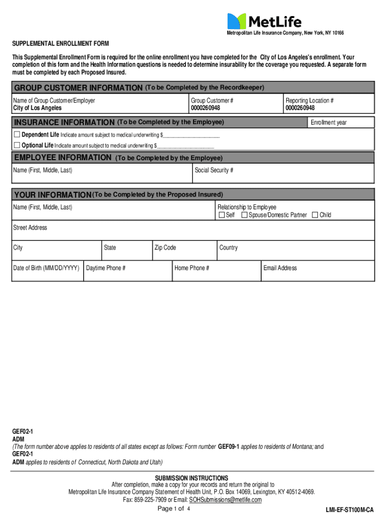 Get the free Supplemental Enrollment Form