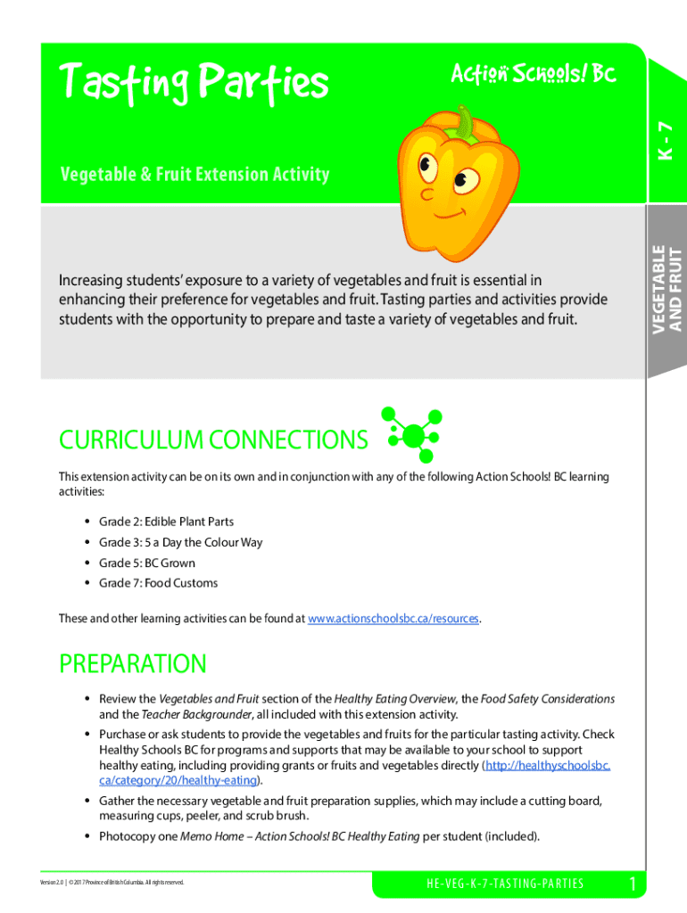 Get the free K-7 Tasting Parties Vegetable and Fruit Extension Activity