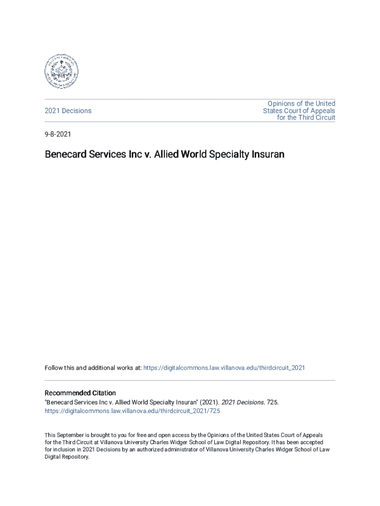 Get the free Benecard Services Inc V. Allied World Specialty Insurance - digitalcommons law villa...