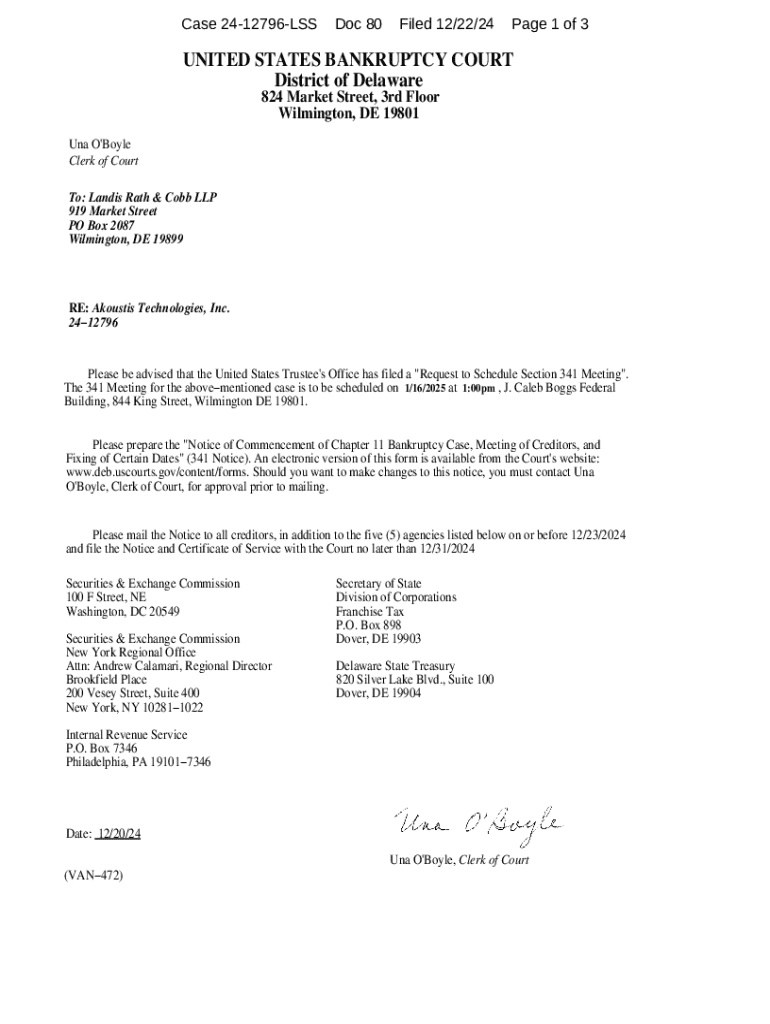 Get the free Notice of Commencement of Chapter 11 Bankruptcy Case, Meeting of Creditors, and Fixi...